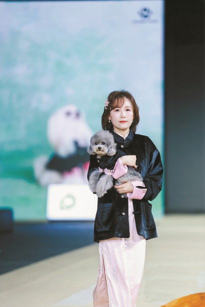 今年,主打新中式风格的时装品牌“兰道”首次参加宠物时装周。相关负责人说,春节前,兰道在上海江宁路旗舰店推出一场“买成衣赠宠物同款”的限时活动。没想到,活动在客户中引发的反响远超预期。“行业中,类似定位的轻奢品牌推出宠物同款比较少见,品牌的客户中有不少人养宠物,看到活动后非常惊喜,把多个品类买成了爆款。”宠物时装周期间,品牌正式推出宠物亲子时装系列,将多个成人服装经典款“复刻”在宠物身上。