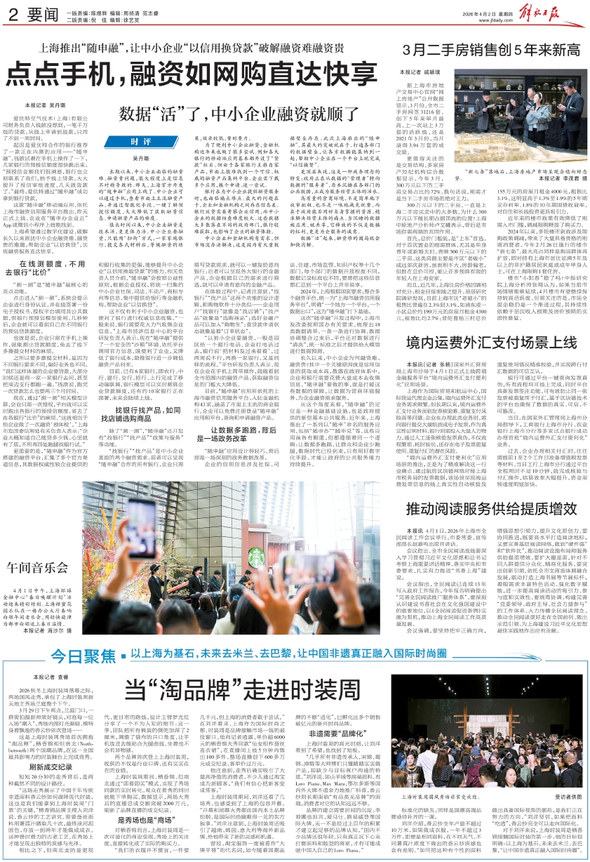 长期以来,中小企业面临的融资难、融资贵问题,很大程度上是信息不对称导致的。昨天,上海官方开发的“随申融”应用上线了。中小企业可以通过手机,查看市面上主流融资产品,并通过智能化手段,一键了解预授信额度,大大降低了获取融资信息、申请融资产品的难度。