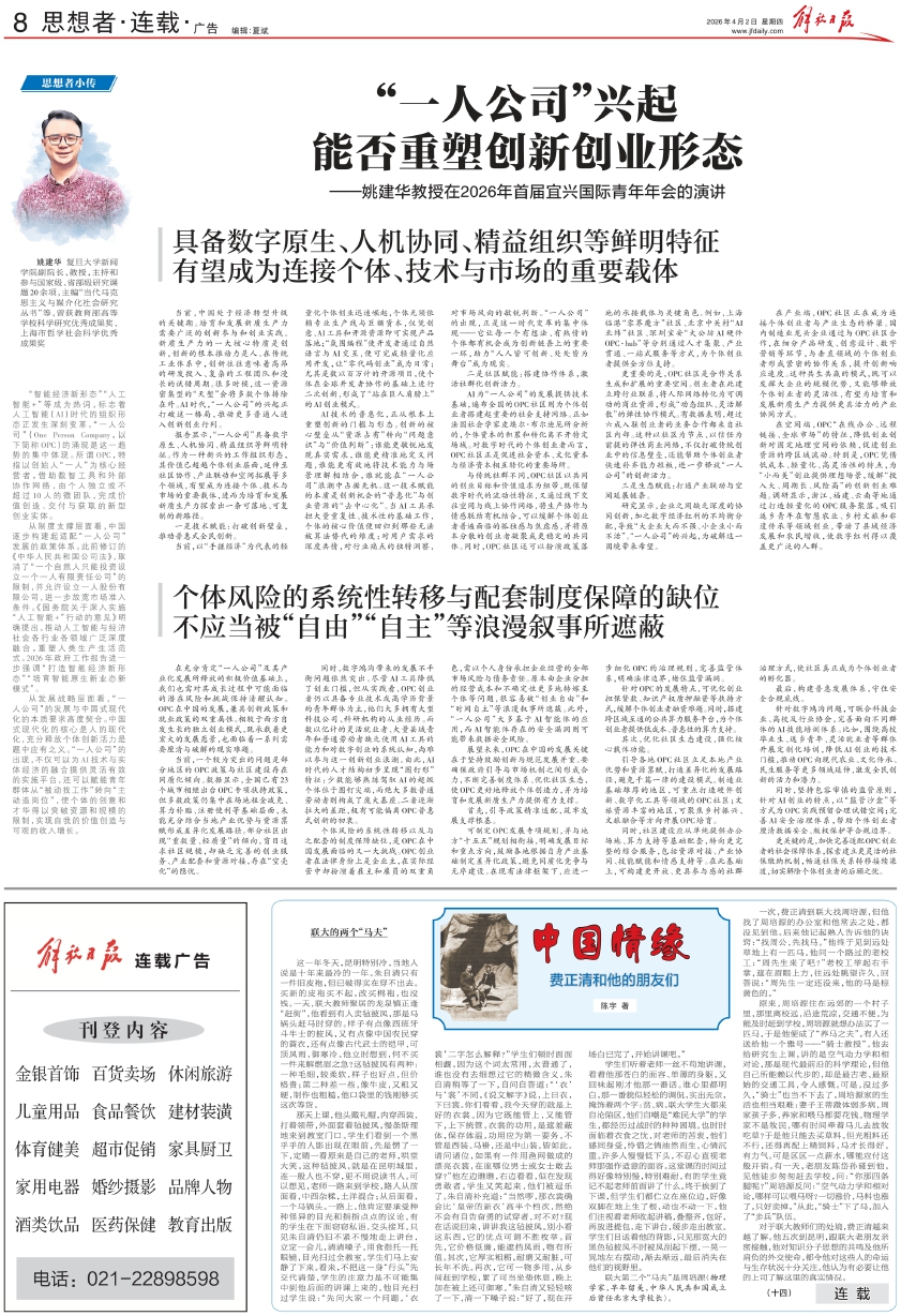 研究显示,企业之间缺乏深度的协同创新,加之数字经济红利的不均衡分配,导致“大企业大而不强、小企业小而不活”。“一人公司”的兴起,为破解这一困境带来希望。