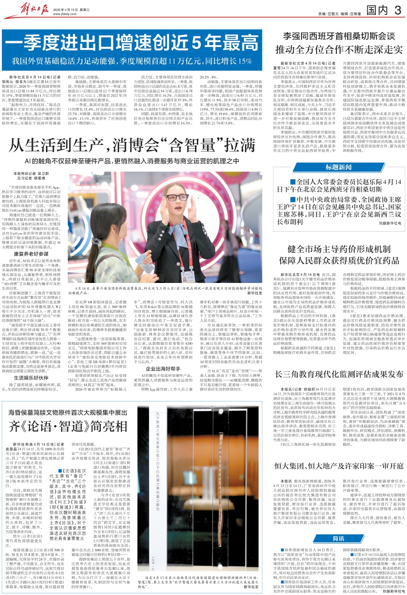2026年被业界称为“AI眼镜元年”。消博会1号馆里华为、科大讯飞、乐奇Rokid等头部品牌的AI眼镜同台竞技。博士眼镜展台前,记者戴上夸克AI智能眼镜,品牌区域负责人陈永明当场说了一串英文,镜片便实时滚动出中英文双语字幕。“设备支持89种语言实时互译,出国旅游、商务会议都能用,还能做会议纪要、提词、接打电话。”他告诉记者,这款眼镜目前零售价4200元,“海南全岛封关之后在免税店买,能打到常规价的七到八折,但科技迭代很快,未来五年内有望降到千元以内。”