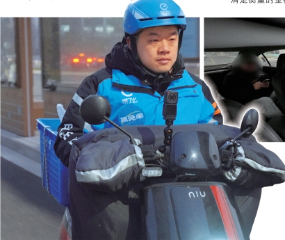 张亥秋正在送外卖途中。 资料照片 -