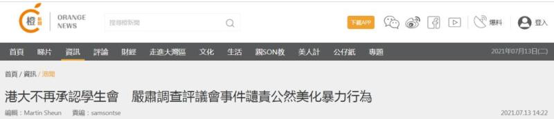 香港“橙新闻”消息,香港大学今日(13日)发表声明,强烈讉责港大学生会评议会公然美化暴力的严重不当行为,宣布不再承认香港大学学生会现有在校内的角色。