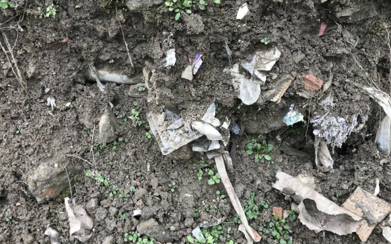 △在建绿化带附近,原有的土壤也存在生活垃圾与建筑垃圾混合的情况。