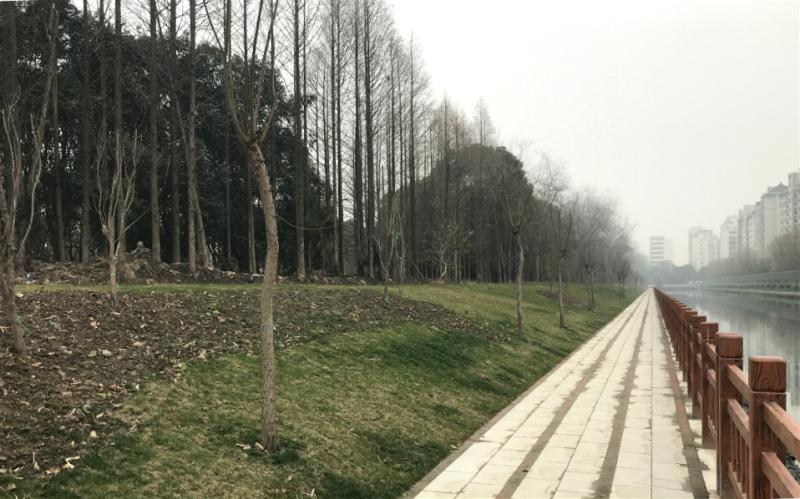 合生城邦的一位居民告诉记者,东面的绿化带当初也是这么铺过来的。记者沿滨江步道一路走,至南洋瑞都小区对岸,果然看到这片绿化带呈统一的缓坡状,铺上了草坪,并种植了若干乔木。
