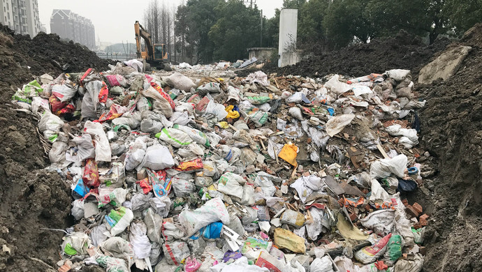2月1日,江川路街道社区管理办负责人在电话中反馈,确实存在分拣不到位的问题,已责令现场人员后续必须拆除包装袋再进行掩埋。现场堆放的生活垃圾来自周边小区,由于闵行的清运额度满了,暂时被堆放在一角,目前也已通过其他途径处理干净。但对于已经倾倒甚至填埋好的87车建筑垃圾,对方表示“不在现场不太清楚,应该量不多”。