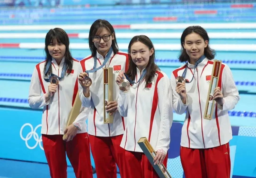 北京时间8月5日,在巴黎奥运会女子4×100米混合泳接力决赛中,由万乐天、唐钱婷、张雨霏、杨浚瑄组成的中国队夺得铜牌。