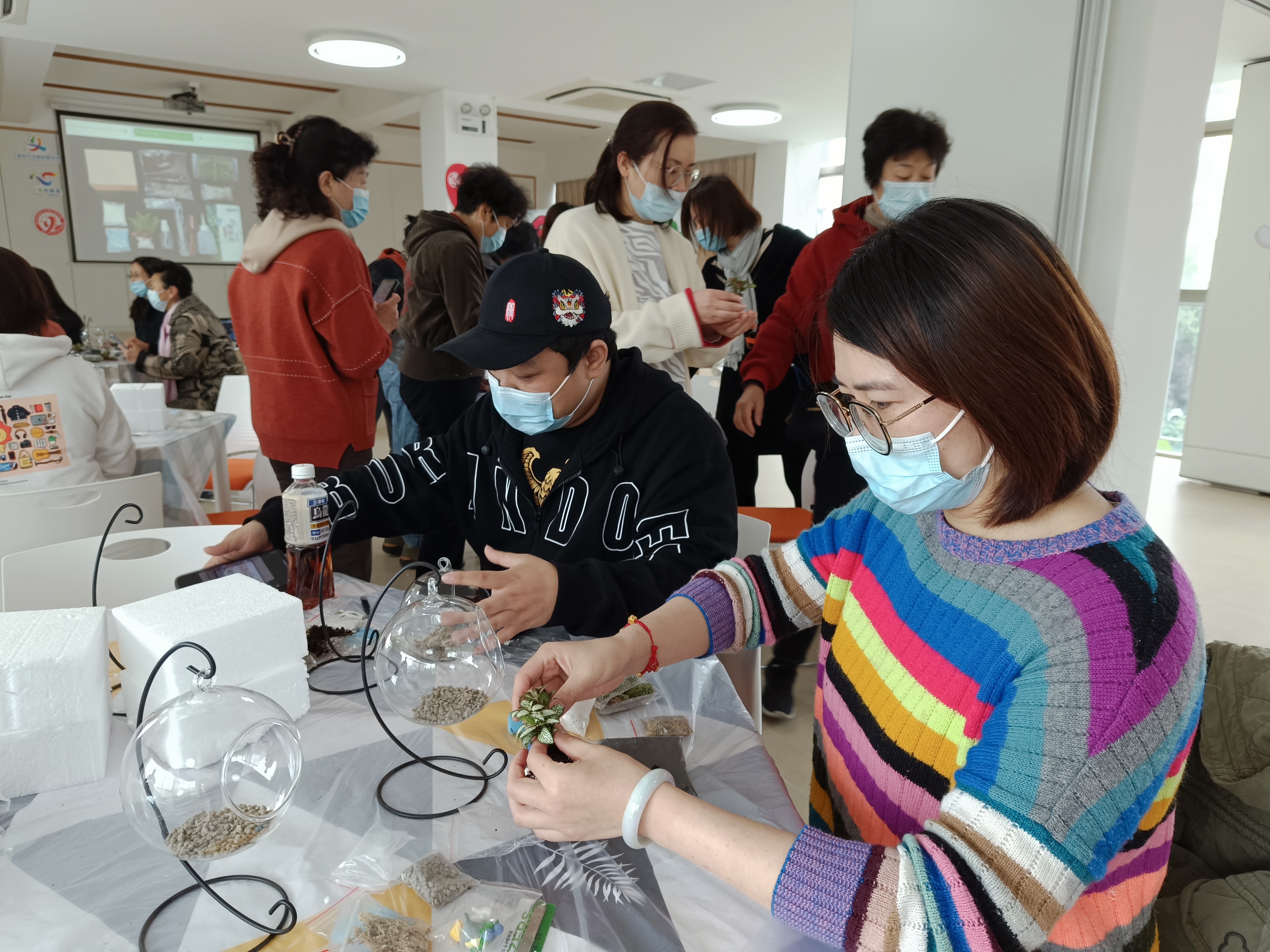 看似简单,但是需要整体造型的规划布局,动手的同时还需要动脑,难度也不小。居民们在老师的手把手演示下,一步步认真仔细地完成微景观的布置。经过一个小时的创作,一个个可爱、生动形象的微景观艺术作品纷纷精彩亮相。