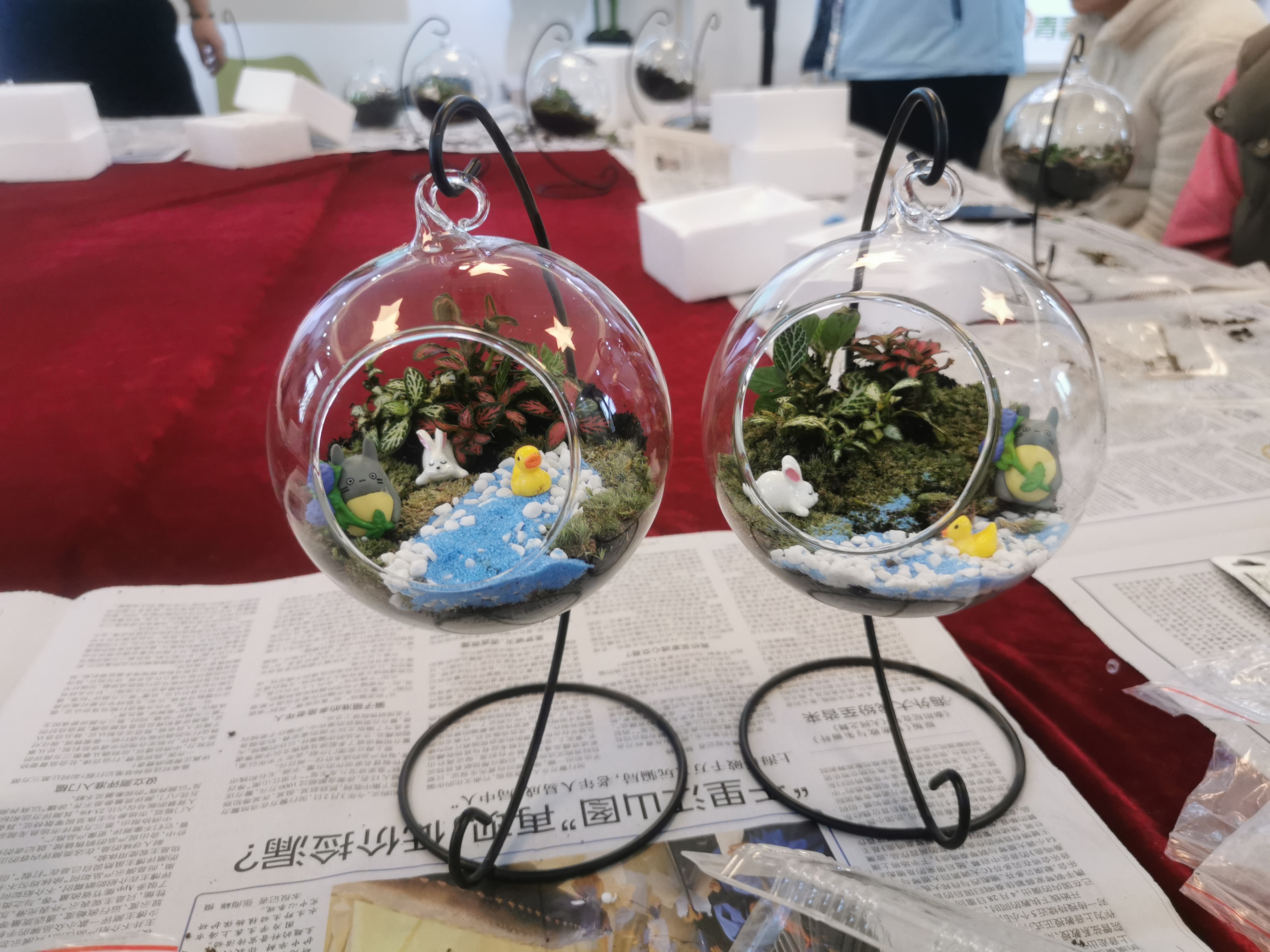 在活动中,首先由专业的老师介绍了制作微景观的流程,以及制作方法。在老师的指导下,大家一起动手,打造生态世界。晶莹剔透的玻璃瓶、绿意盎然的苔藓植物、错落有的精光布设、奇幻卡通的玩偶.......大家在轻松的氛围中,将初春美丽的心情制作成了独一无二的限量款作品。