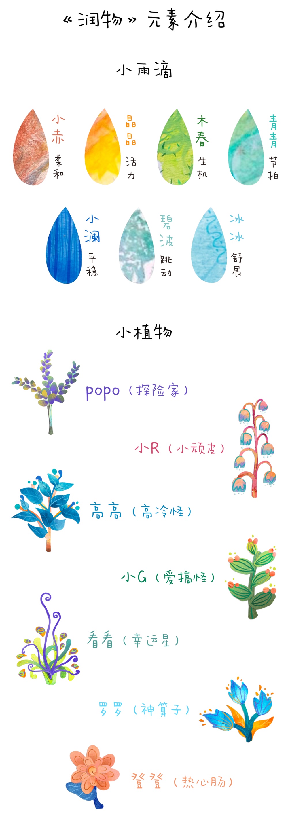 创造的小世界里,有七种不同颜色的雨滴,用手触碰落画面中落下的彩色雨滴,会生长出七株形态各异,并能演奏乐曲的花朵和植物。