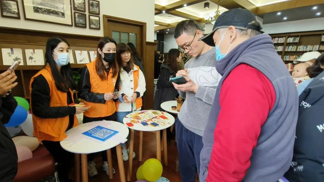 作为“人文行走,七彩梅陇”新增的游学点,城市书房益梅馆内已经树立起紫色的打卡铭牌。现场,还有志愿者引导市民进行扫码打卡,不仅可以更全面地了解益梅馆的基础信息,打卡和答题之后还能获得精美的书签作为礼品,打造了全面参与学习的良好氛围。
