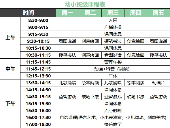 每日上午8:30~下午17:00,最迟可托班至18:00