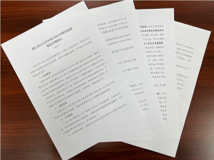 徐汇区食药安办、徐汇滨江管委办联合制定了《徐汇滨江公共开放空间小型餐饮备案规范管理指引》(以下简称《指引》),明确了徐汇滨江管委办、区市场监管局、属地街镇等部门职责,从承办单位资质到站点选址、硬件设施,再到食品加工经营活动,《指引》都有详细要求。