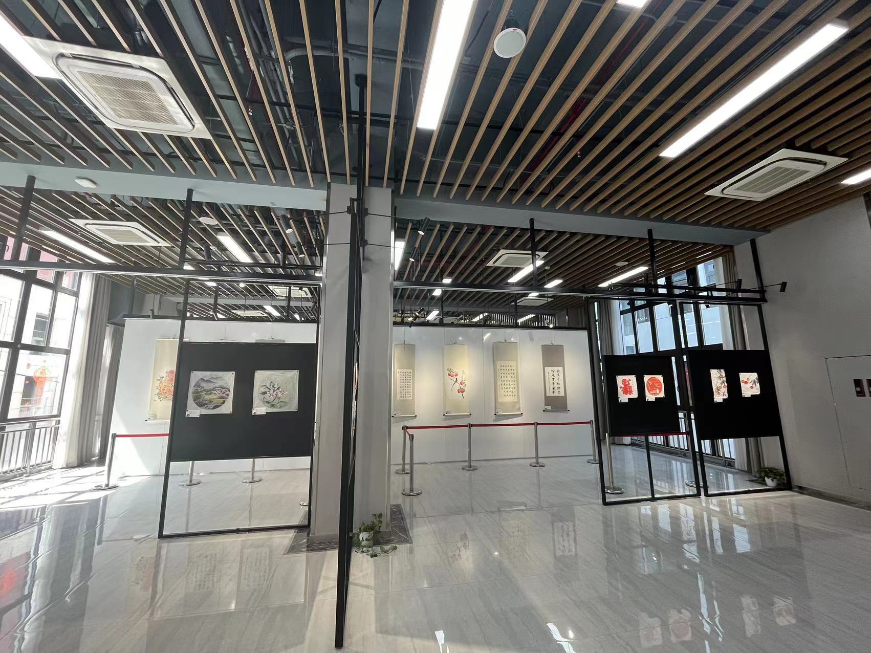 面积近300平米,层高达5米的展厅,迎来了“我们这十年”市民文化节特展和“翰墨书香 共绘美好生活”社区书画展。书画展共展出作品四十余幅,全部由社区书画爱好者们提供,他们用自己的笔墨来描绘美好的生活,光明的未来。