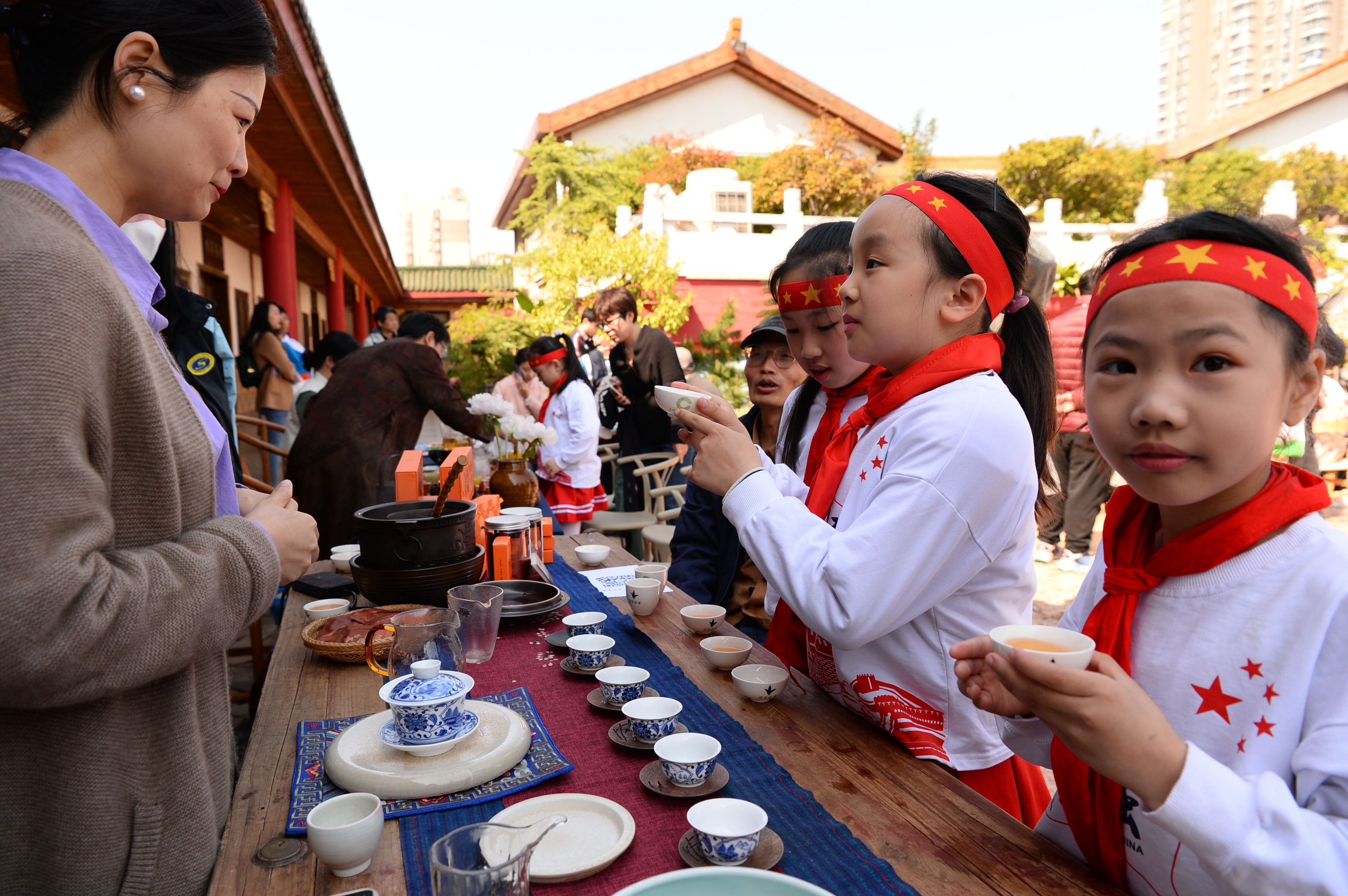 在各茶艺师的带领下,小朋友们通过了解不同时代泡茶器皿、饮茶方式等知识,感受源远流长的茶文化精髓、意蕴,与茶进行了一次深度交流。