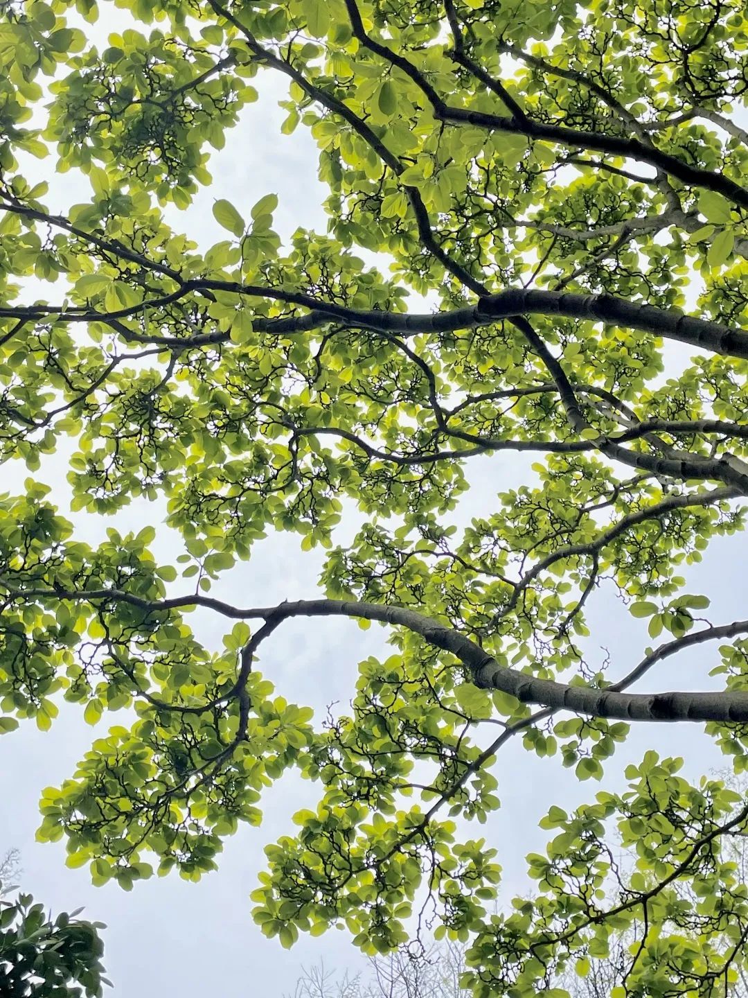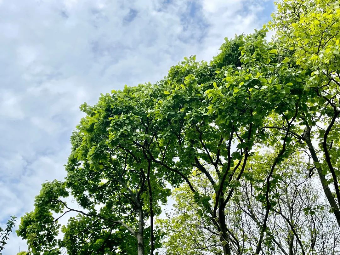 近期,方塔园里的白玉兰树长出了新的嫩叶,阳光下,碧绿的新叶显得格外绿,好像每片叶子上都有一个新的生命在颤动一样。