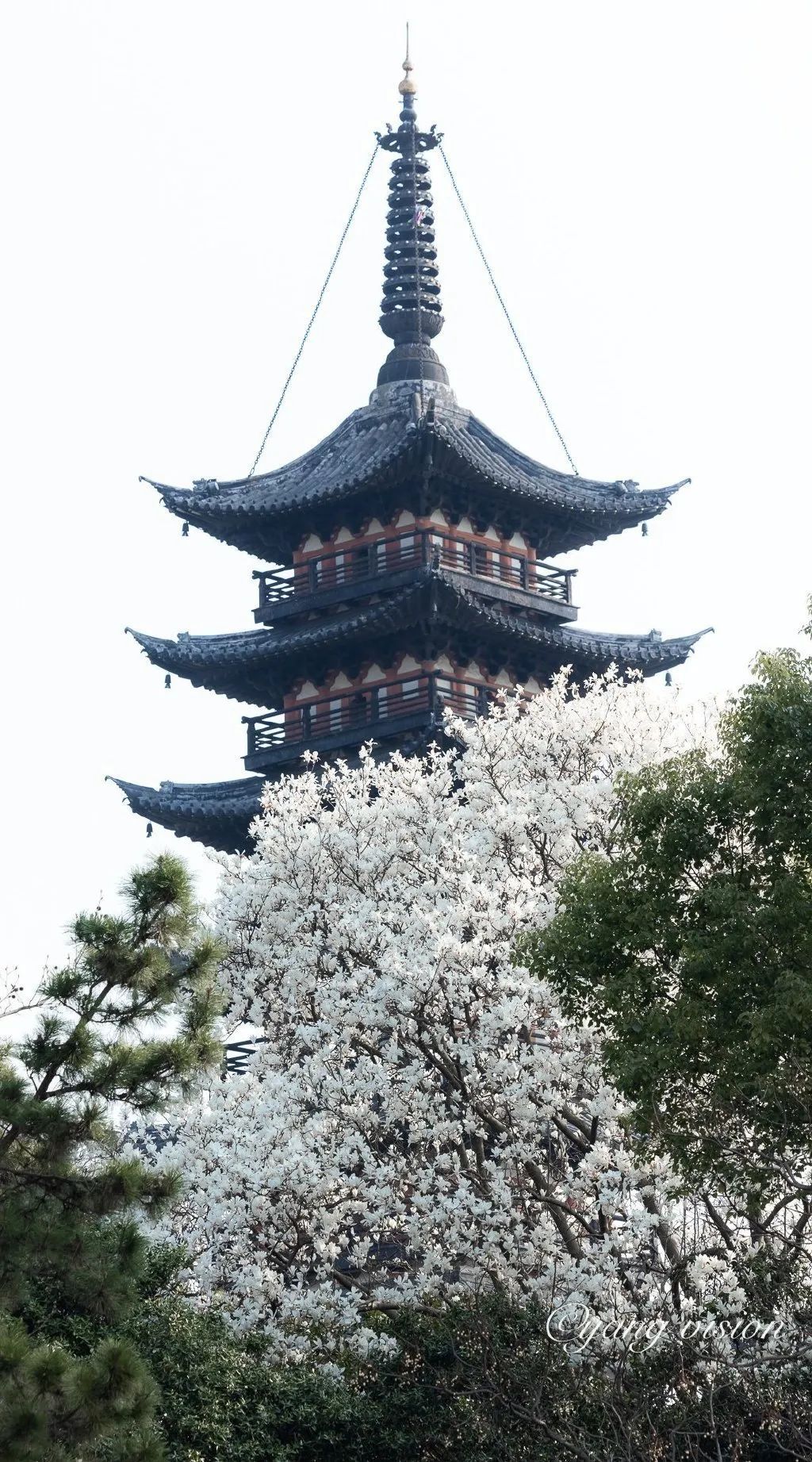 虽然方塔园的白玉兰已凋谢,但是在它盛开时,繁花满树,古塔在玉兰花映衬下,更显浓郁的底蕴和被岁月沉淀过的与众不同的魅力,吸引了众多游人慕名观赏,让我们通过微博大V、知名摄影博主(@影像视觉杨)的镜头再来回顾一下玉兰映方塔的美好影像。