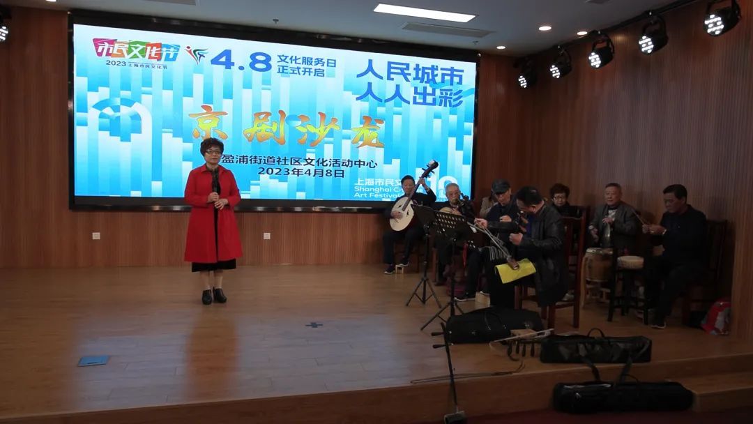 而在位于盈浦街道社区市民文化中心的市民大舞台里座无虚席,大家早早到来,翘首以盼今天的市民文化节演出。活动为大家呈现的是选材于毛主席诗词的京剧《忆秦娥•娄山关》,以及现代京剧《沙家浜》选段“军民鱼水情”,演员们在台上的倾情演绎,带领观众们重新走进那段激情燃烧的岁月。现场观演气氛热烈,演员们扎实的基本功和出色的舞台演绎赢得了全场观众的喝彩。青浦区京剧爱好者协会的会员冯珉说:“国粹京剧要传承,离不开戏迷观众朋友们的支持,希望通过市民文化节,有更多人爱上京剧,加入我们的行列,一起为弘扬国粹、传承京剧艺术贡献自己的一份力量。”