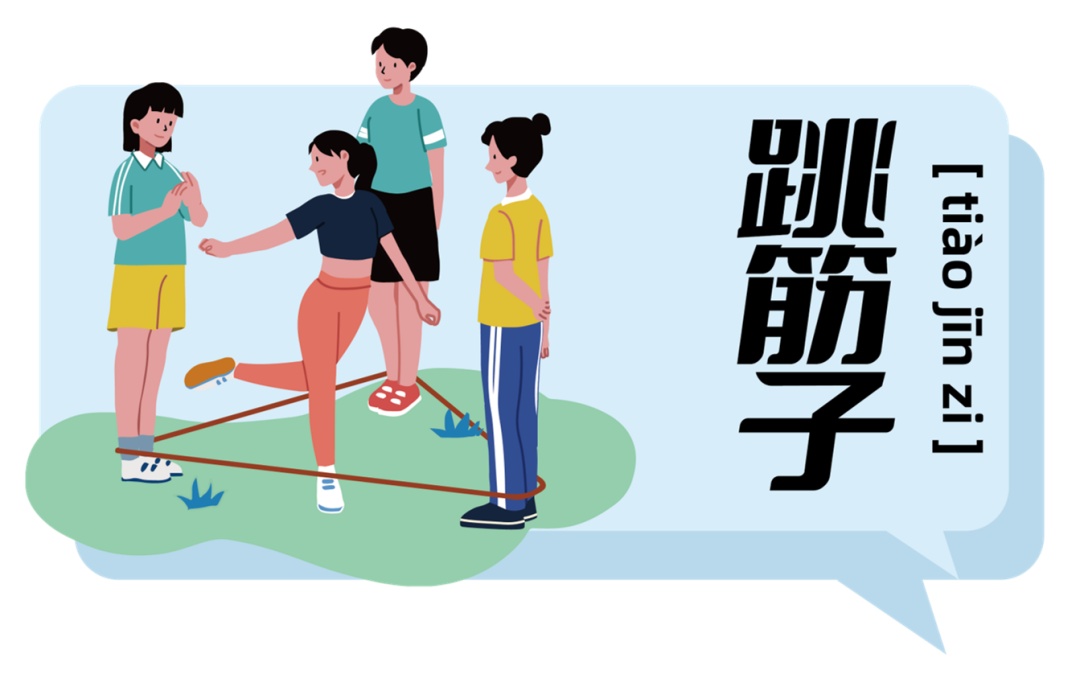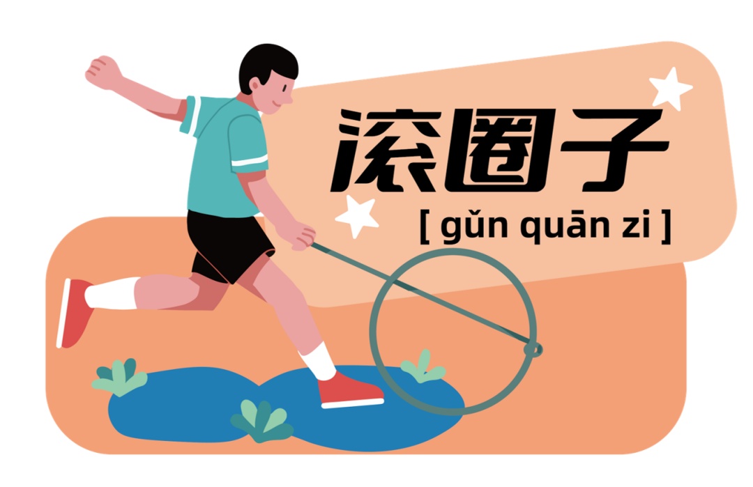 跳筋子(跳橡皮筋)、滚圈子(滚铁圈)、