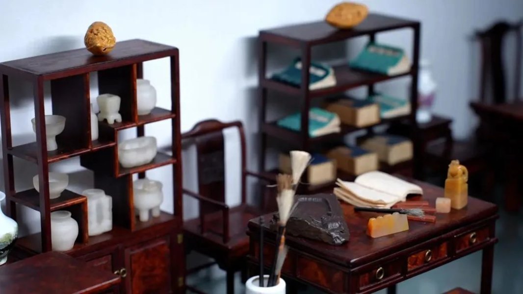 制作微型明清家具,除了考验功力和技术,还有极致的耐心。选料、开料、刨料、磨料、开榫卯、拼装、打磨等,工艺流程一步不少。由于家具细巧,且榫卯结构对于家具的精确度要求极高,很多微型家具制作前还要制作样板。吴根华拿他的得意之作拔步床举例,小小一个拔步床,除去选料、开料、制作样板等基础性工作,主体制作工程需要3个月。80多个部件,一天只能完成其中的2片,有时候一不小心弄断了木料,就前功尽弃,可谓精雕细琢真功夫。吴根华介绍道,书房橱柜里摆放的客厅、卧房、书房、闺房4套微型明清家具,整整花了他十几年的心血。“不热爱,不投入时间是做不出来的。”
