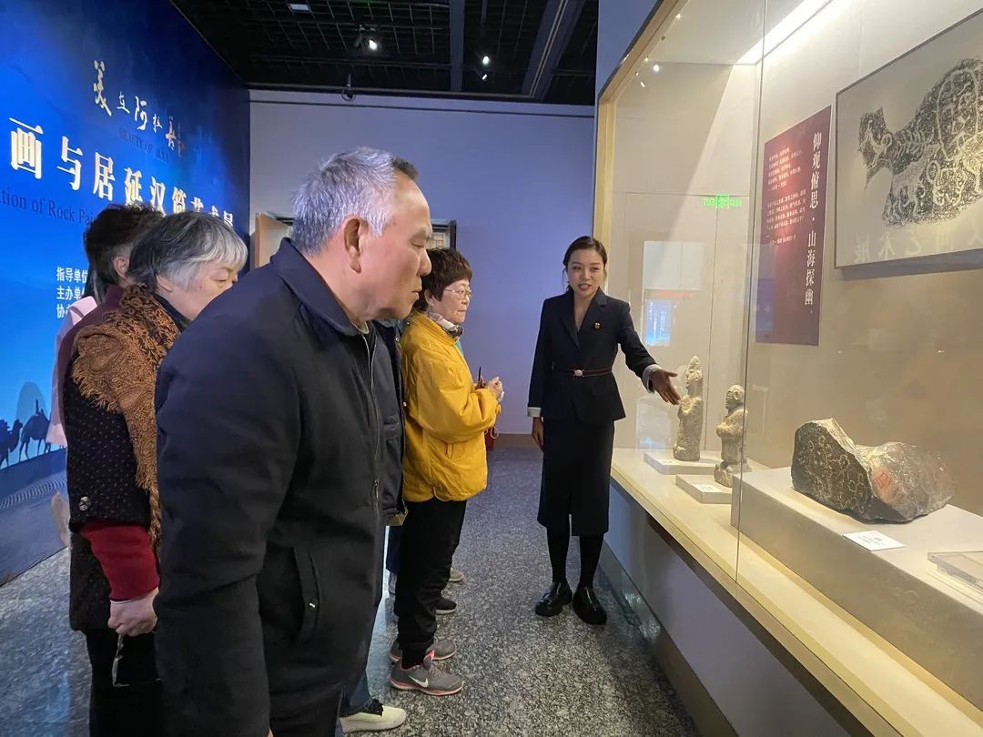 本次展览分为“仰观俯思·山海探幽”“千载咏叹·披图可览”“弱水流沙·木石共思”“丝路芳华·鉴古开今”四个章节,共有34件阿拉善珍贵岩画实物、6件草原石人像、30枚居延汉简和44幅岩画拓片精彩亮相,为观众呈现一场兼具历史品格和学术水准的艺术大餐。开幕当天,现场还开展了居延汉简墨写和岩画拓印体验活动,让观众近距离感受居延汉简承载的历史文化内涵和阿拉善岩画的古老艺术气息。“我们的先民实在是太了不起了。”观展后,沙女士由衷地感叹。