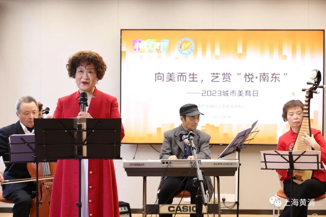 在“悦·南东”零距离家园这栋百年老建筑里,春日美景于升腾的气温中悄然酝酿,一场精心准备的美育演出徐徐拉开帷幕。南京东路街道“本土”群文达人们轮番登台、尽显才艺。POP电乐队带来了轻松欢快的器乐合奏,楼宇白领孙露吉他弹奏纯粹而空灵,京剧队唱腔韵味醇厚,评弹团妙音婉转动听,天籁合唱团一首《葡萄园夜曲》让人仿佛走进了夜色之中美轮美奂的葡萄园,宇悦民乐队合奏《小城故事多》让居民们情不自禁地跟着轻声哼唱……传统与现代相互融合、民乐与西洋乐交相辉映。
