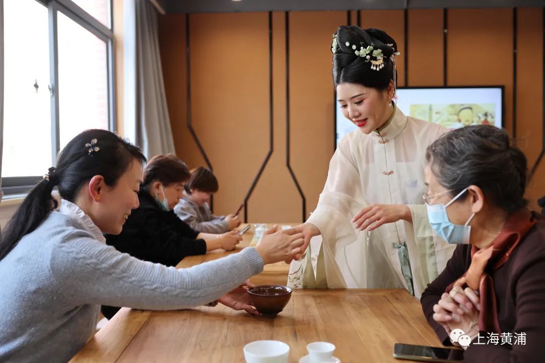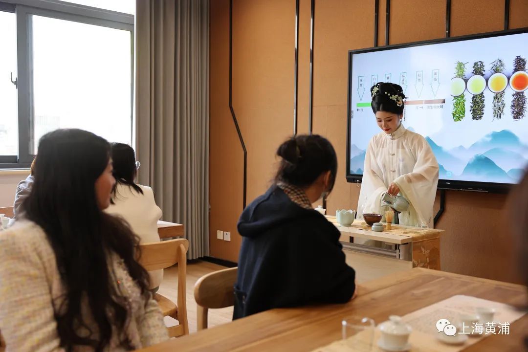 窗外满院春光,窗内茶韵飘香。在一片香气环绕中,徽州茶道非遗传承人、国家高级茶艺师、高级评茶员汪江嫣老师正带领楼宇白领们体验点茶与现代泡茶,感受古代文人的风雅。