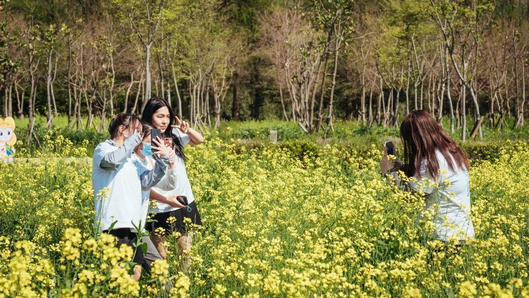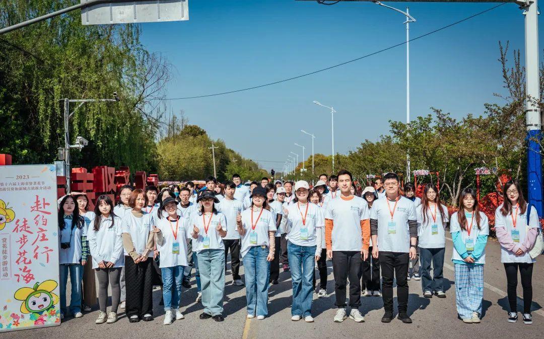 观光大道入口整装集结,大家一同“向快乐出发”,开启赏花徒步游。