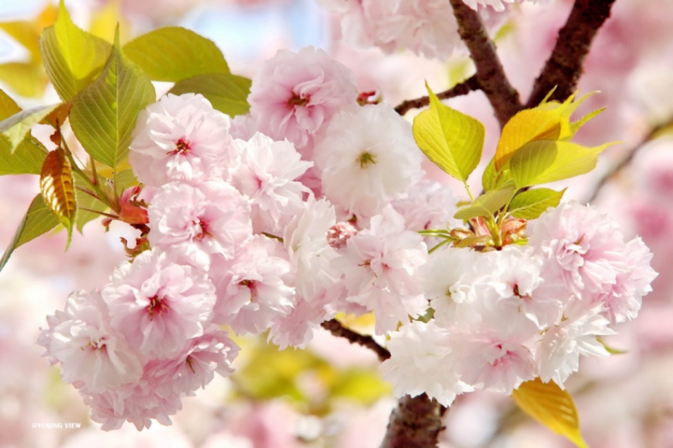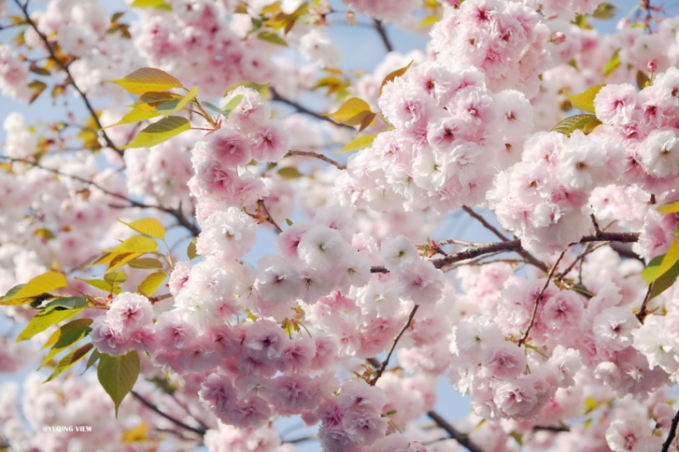 “樱吹雪”后,也迎来了晚樱的登场。晚樱不同于早樱的单薄,它的花朵更硕大,繁花簇拥压低枝头,抬头仰望,花儿朵朵,让春日显得更为热闹。