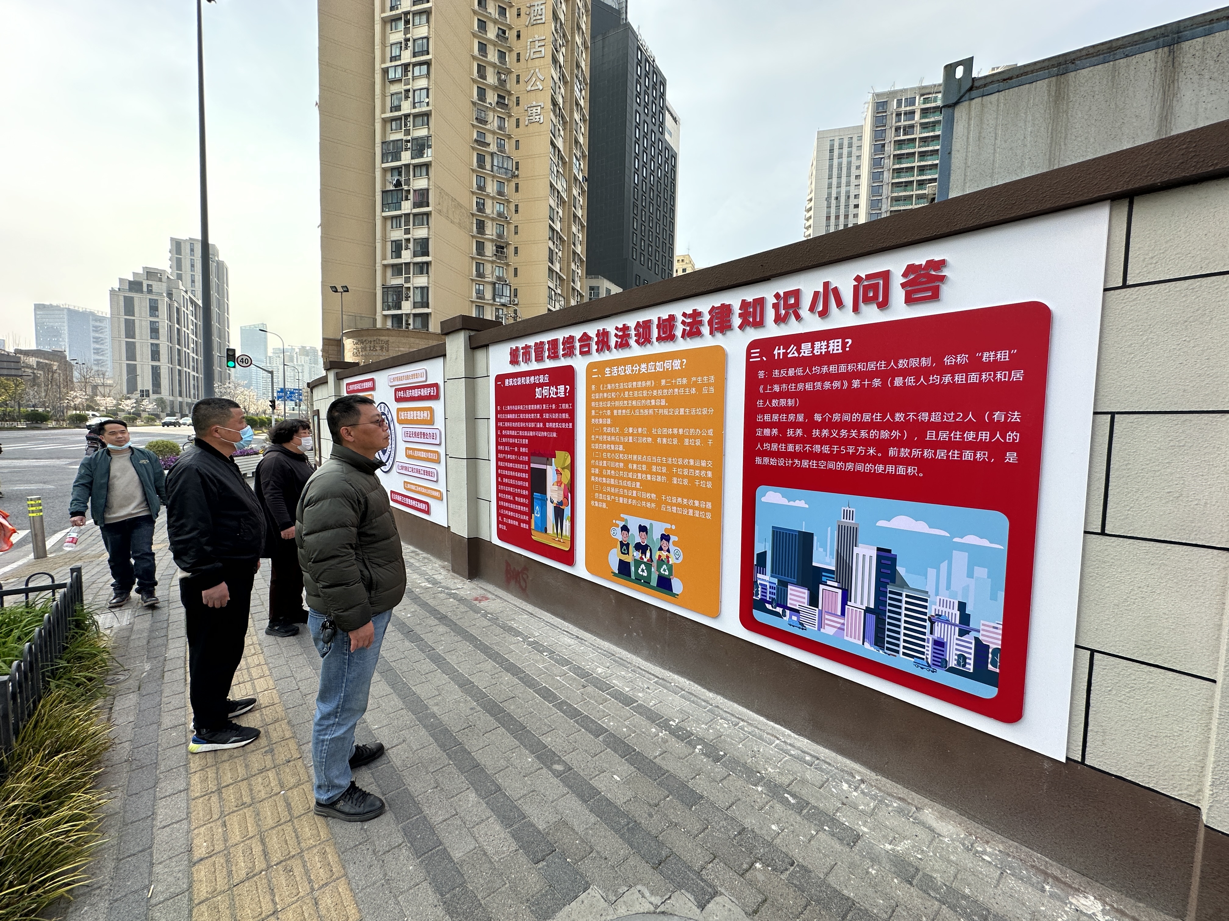 记者注意到,整个宣传墙长70米,共12幅宣传板组成。建筑垃圾、装修垃圾如何处理?生活垃圾如何分类?什么是群租?……一些城市管理执法事项中经常被提及的“热点”、“难点”事项,以法律宣传墙的形式出现,内容涉及城管综合执法重要法规、以及近年来新颁布实施的《上海市生活垃圾管理条例》《上海市住房租赁条例》中的有关内容。
