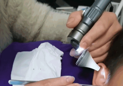5、耳科医生考虑孩子有中耳炎,但是耳屎将外耳道完全封死,无法看到鼓膜者。