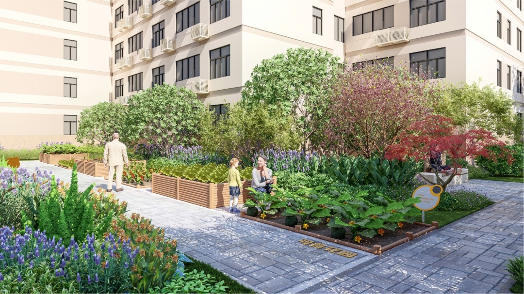 生长互动区位于场地北侧光照较好的区域,营造一个可全龄共享且亲身参与实践的亲近自然空间,社区居民可以在此体验农事与园艺,享受劳作的快乐和收获的喜悦。