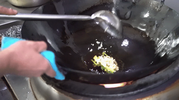 待油中冒泡后再下入葱姜爆香