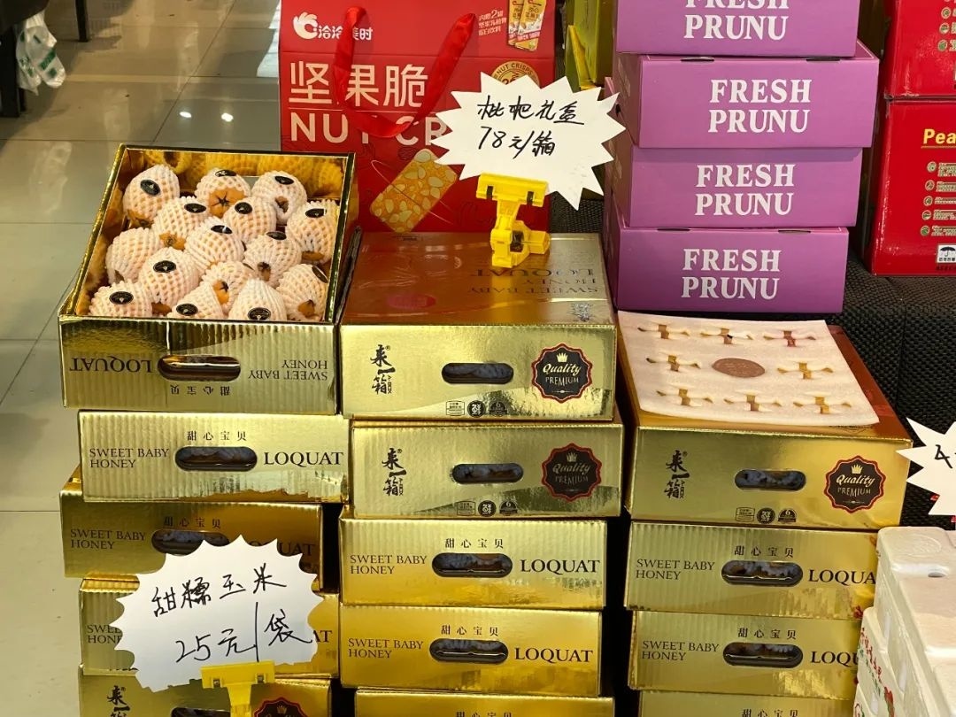 散装枇杷目前每斤30元,礼盒装每箱78元,每天可以售出约20箱礼盒装。