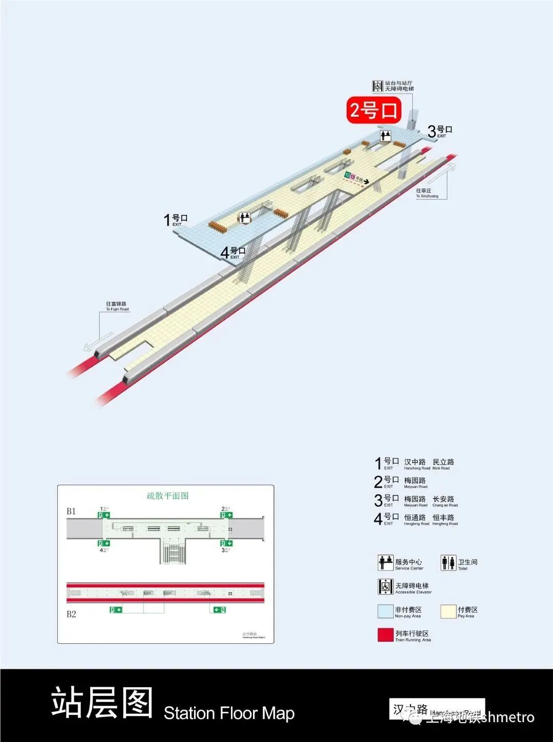 地铁1、12、13号线汉中路站2号口于2023年4月13日起临时关闭,请乘客们从1、3、4、5、6、7、10号口进出车站。