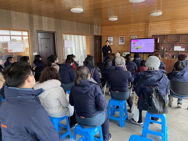 最后,社会学所一行人参观了陈家镇瀛东生态村。瀛东生态村地处崇明岛的最东端,位于长江与东海的交汇处,是崇明本岛距上海市区最近的一个村。先后获得“全国文明村”“全国美丽宜居村庄”“国家级生态示范村”“中国最美休闲村庄”等荣誉称号。在瀛东村村史馆(上海爱国主义红色教育基地),社会学所参观人员详细了解了该村的建设历史。1985年,陆文忠同志带领7名群众在东海滩涂上围垦建立村庄,如今开拓了一条以“生态+”为发展之路,以“美丽乡村”和“幸福崇明”为建设目标的绿色、生态、多元的生态文明村振兴之路。