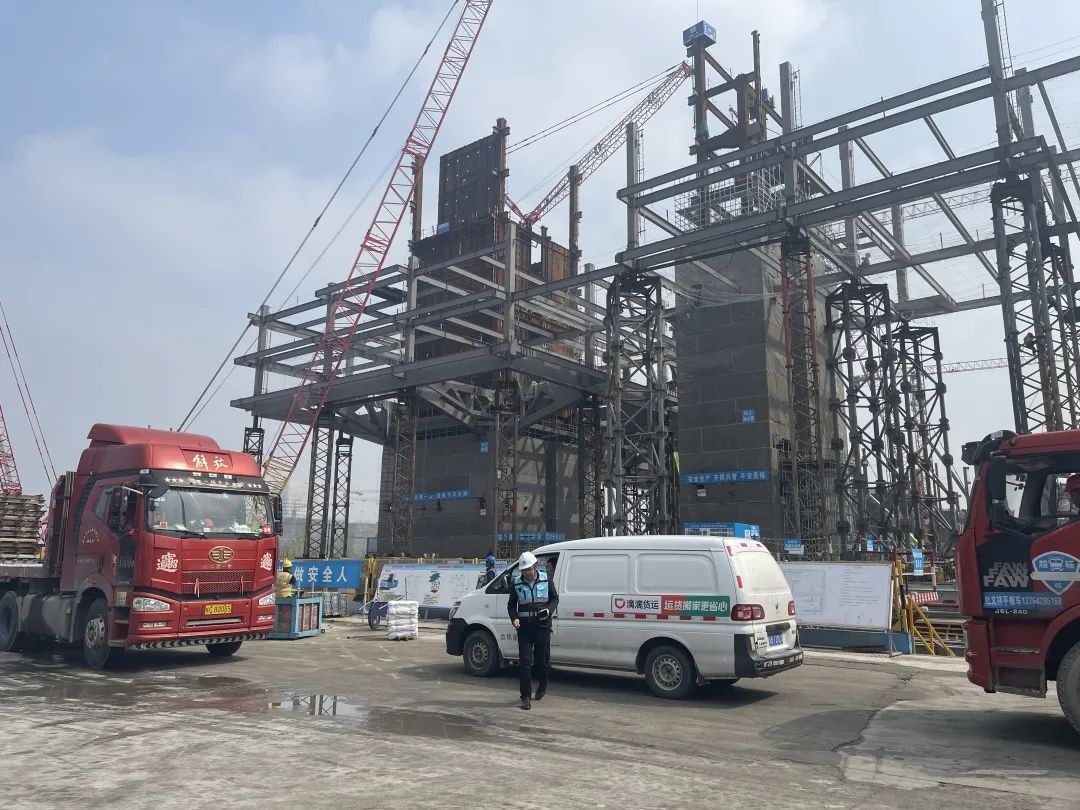 建设现场热火朝天,项目占地8.1万平方米的美的全球创新园区内已有4座裙房钢结构初具雏形,处处可见工人们铆足干劲、快干实干的景象。目前基坑开挖已经完成,正在抓紧进行结构施工,预计将在今年年底完成全部主体结构,争取在2024年底竣工验收。“目前地下区域的主要结构已经完成了‘正负零’,正在进行地上钢结构和核心筒的施工。我们采用的是172根斜拉索,加上钢桁架,把钢结构挂在14个核心筒上,形成悬浮的建筑效果。最大的跨度达到70米,悬吊长度最大达到45米。”上海美的全球创新园区项目总工程师付冠杰说。