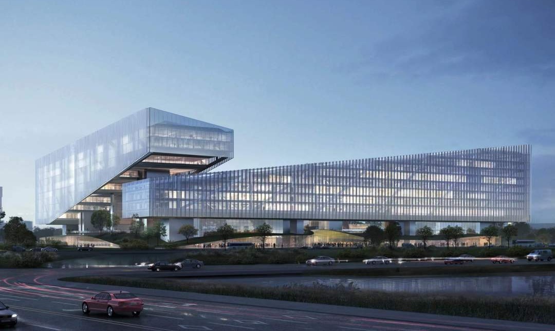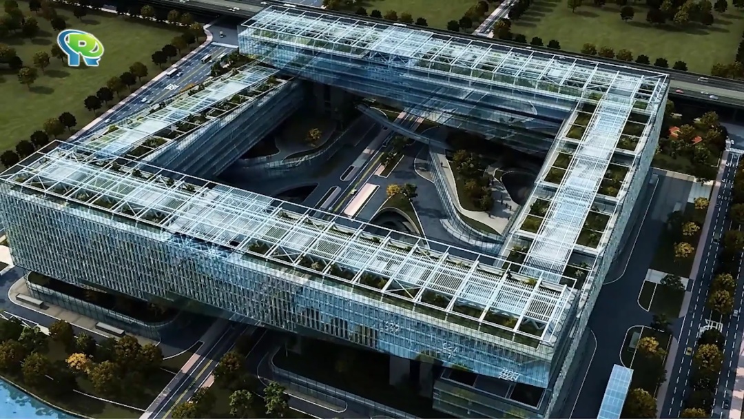 建筑整体采用钢结构体系,在空间布局上摆脱了传统办公水平分区、上下楼层垂直复制的单调感,一大开间办公场所连续展开,突破了楼板和墙体的限制,连续办公场所可以超过20000平方米。建筑北区将以研发办公为主体,南区则以员工生活为主题,通过景观广场和空中步道融合在一起,裙楼采用自然景观屋面覆盖,打造连续立体绿化、建筑空中庭院和员工会议休闲的绝佳之地。