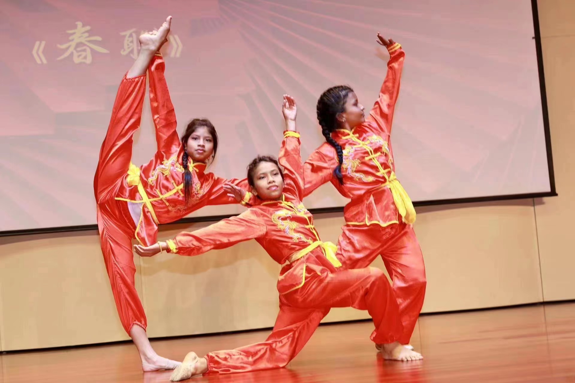 随后,双方学生开展文艺汇演。大宁国际小学学生们表演了舞蹈、琵琶古筝合奏、合唱英文歌。厄瓜多尔学生们则带来了“中国元素”满满的演出,唱中文歌,跳中国民族舞,赢得大宁国际小学学生们热烈的掌声与欢呼声。