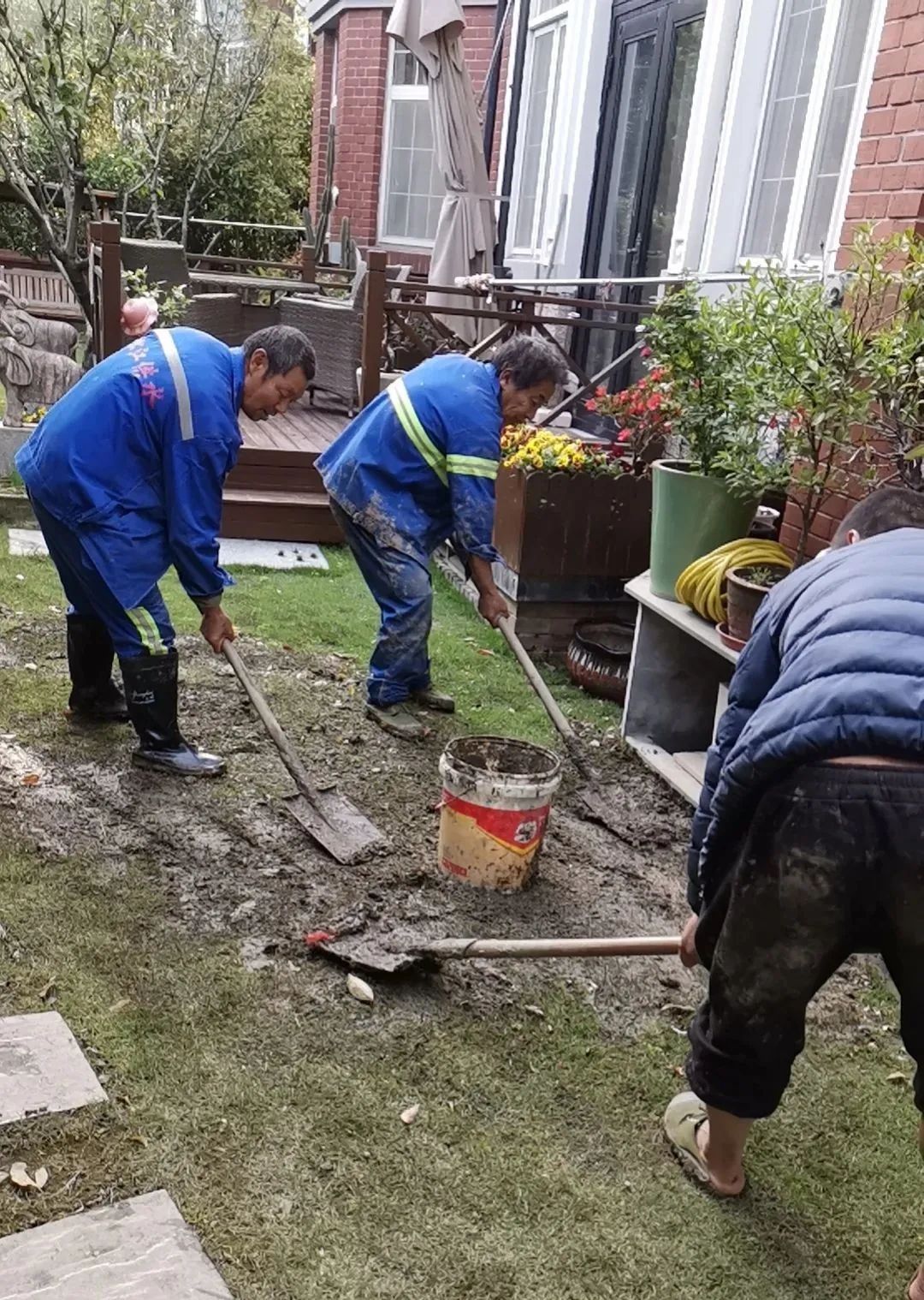 汉普顿庄园小区保洁员施彩龙日前在进行保洁时,发现小区内一栋房屋附近不断有水渗出。“当时以为该住户忘记关水龙头了,就按门铃提醒,可是家中无人应答。”施彩龙在提醒未果后,立即将信息上报给了泰晤士小镇居委会和上海新桃源物业管理有限公司。