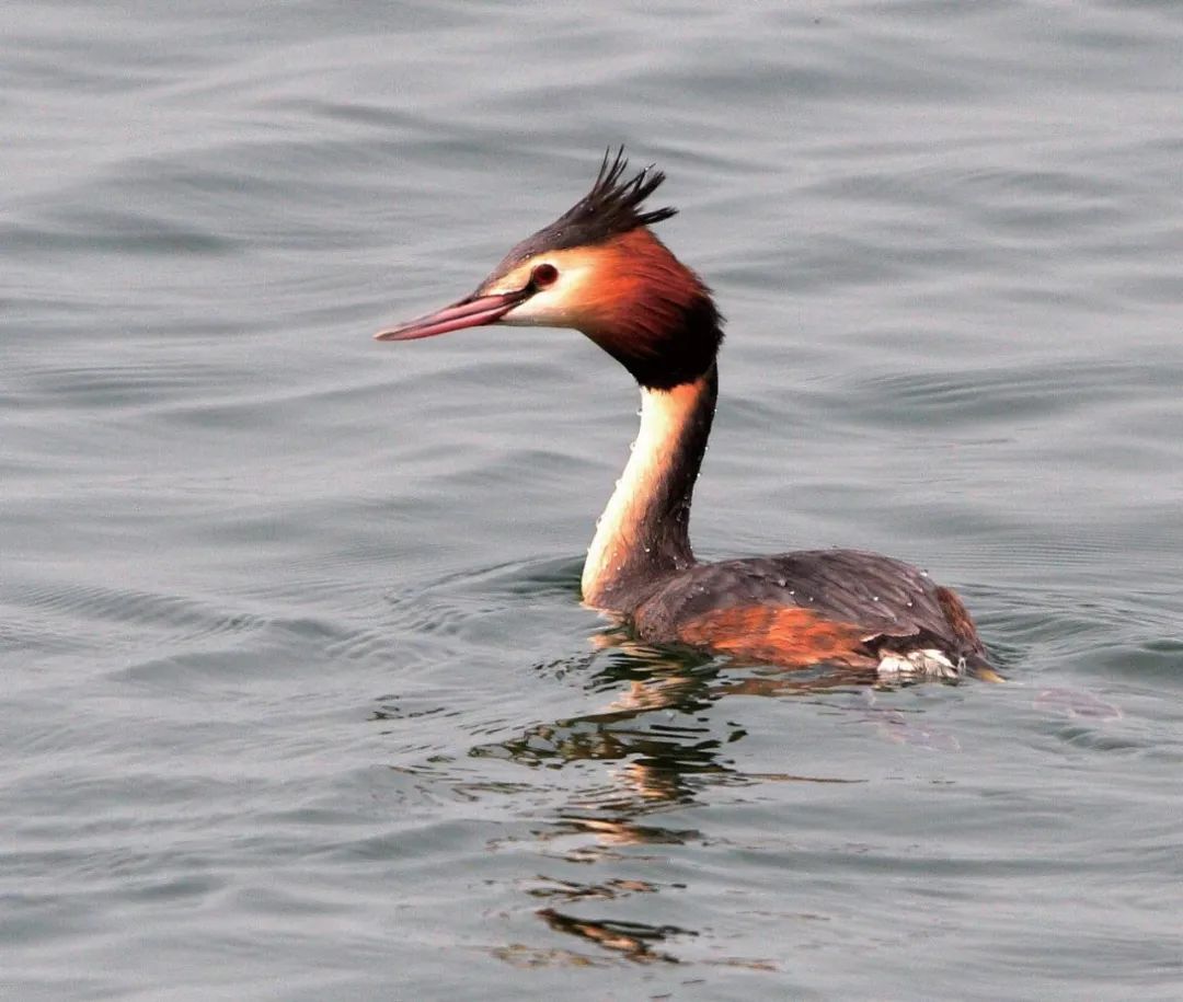 凤头鸊鷉在崇明大多是冬候鸟,但也有部分太喜欢崇明了,选择在这里繁殖。