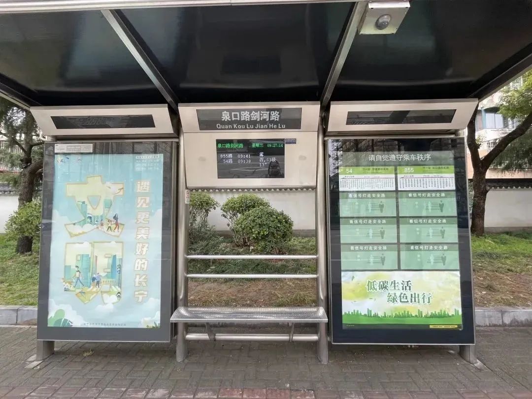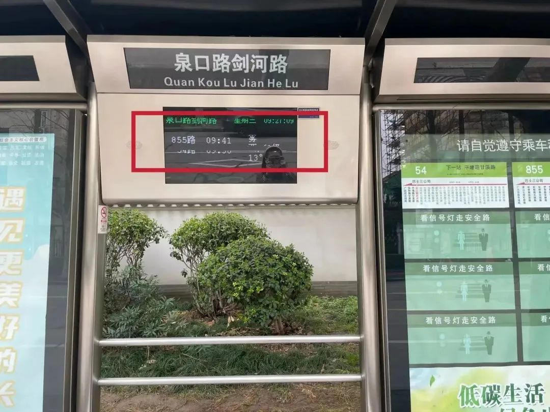 乘客可以通过车站显示屏或下载随申行APP,获取车辆实时到站信息,做到公交出行“心里有数”。