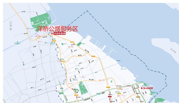 洋桥服务区位于G346沪安线沪太公路洋桥检查站处。G346沪安线是一条南北走向、贯穿宝山南北的交通要道,承担着大部分省际货物运输的任务,与江苏省相连,途经宝山区杨行镇、月浦镇、罗泾镇等,与外环高速、郊环高速、市管、乡镇等多条道路交叉,沿线住宅小区、学校、厂区、人口密集,交通繁忙,途经驾乘人员需要一个多功能的服务驿站。