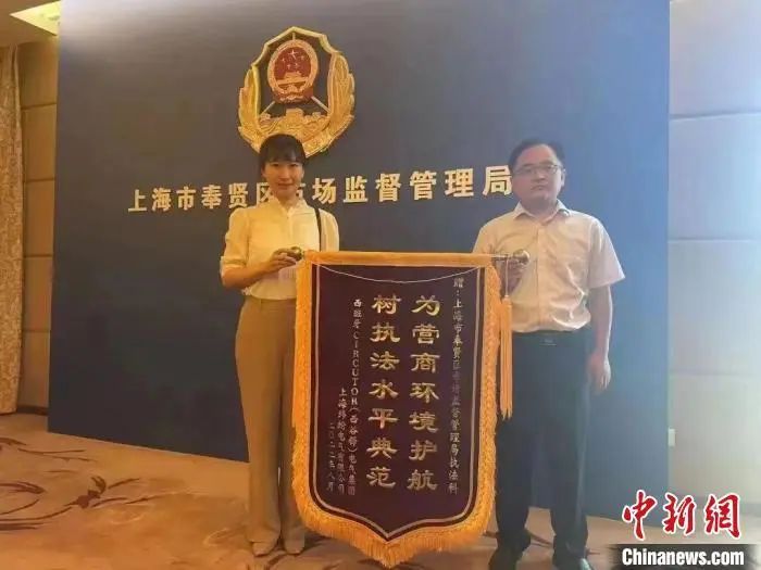 西班牙企业送来锦旗。奉贤区市场监督管理局(知识产权局)供图