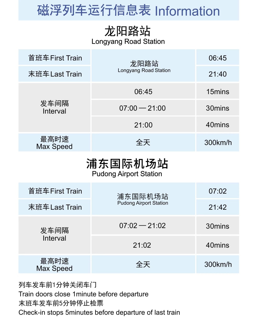 可搭乘磁悬浮列车往返龙阳路站和浦东国际机场。