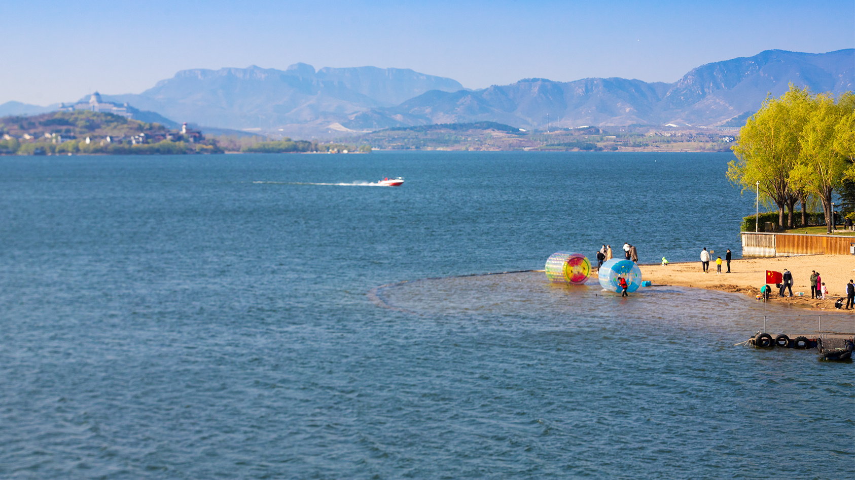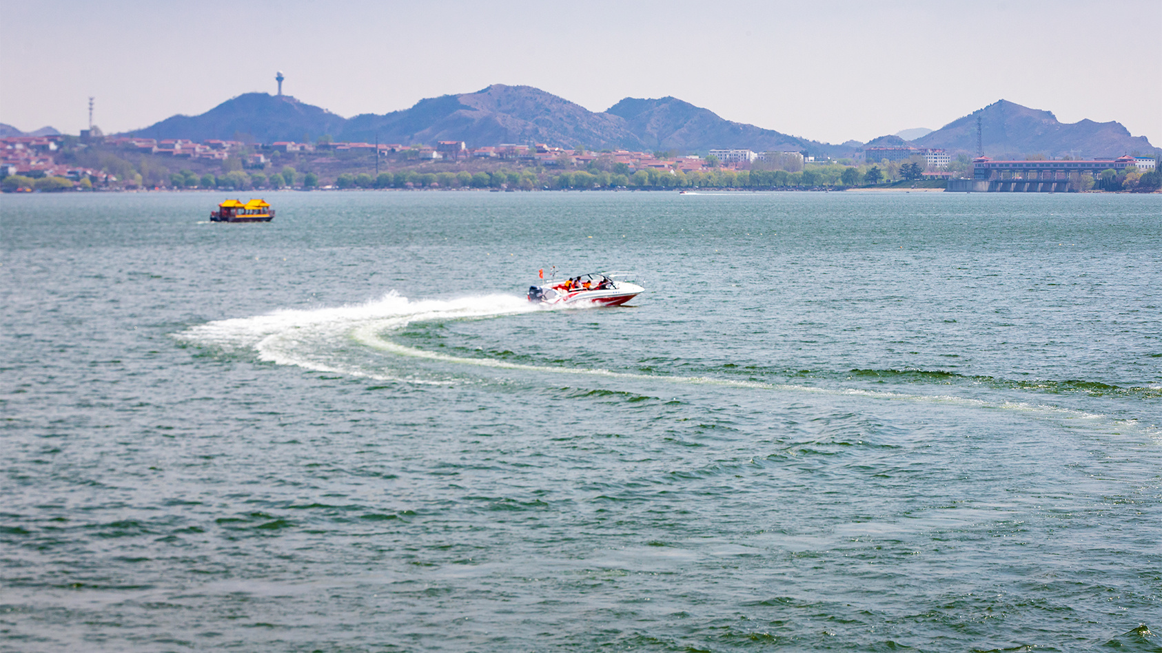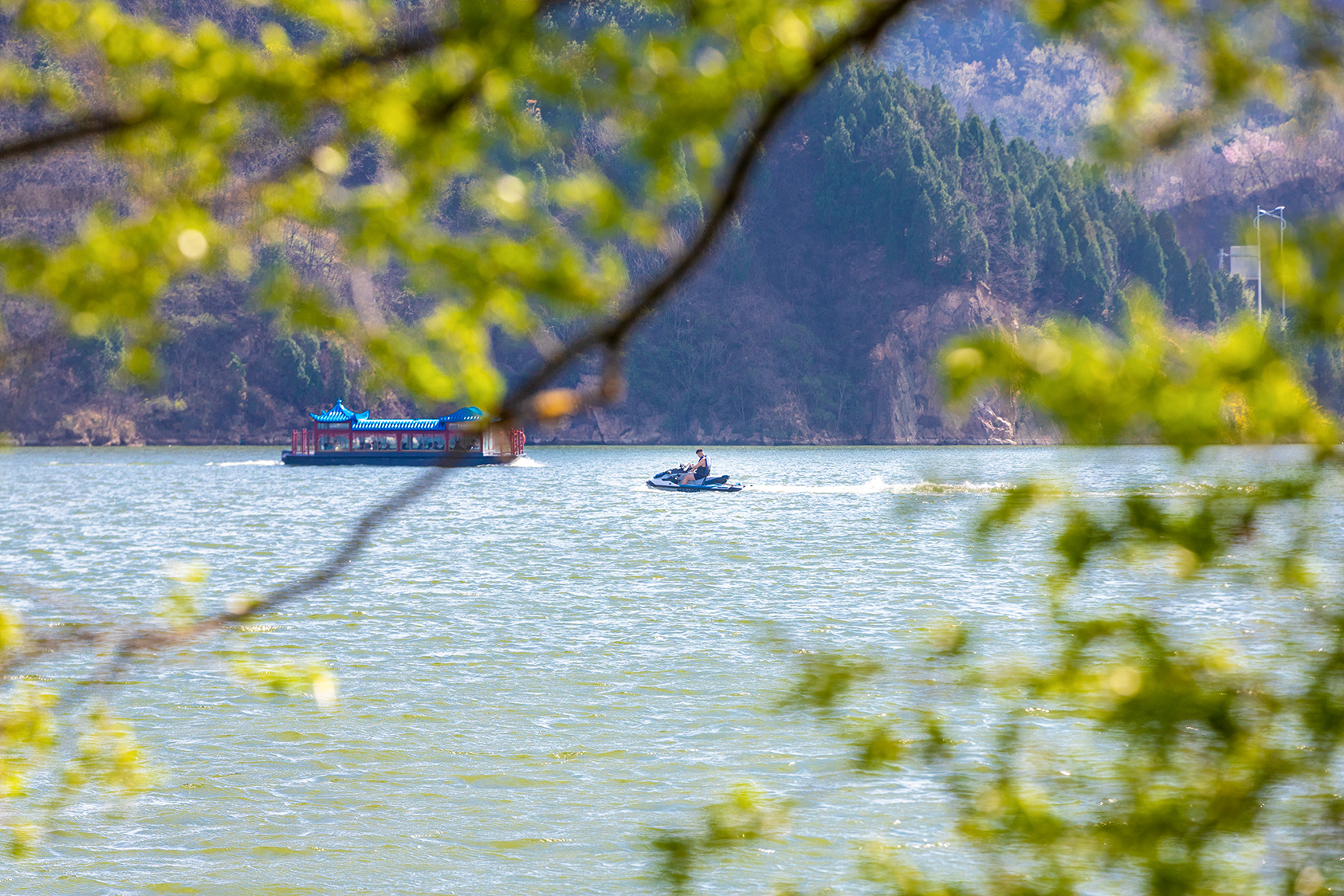 春天里来到济南雪野湖,乘坐游艇在湖中驰骋,“舟行碧波上,如在画中游”,聆听水花的声音,看鹭鸟翩飞,美哉乐哉。