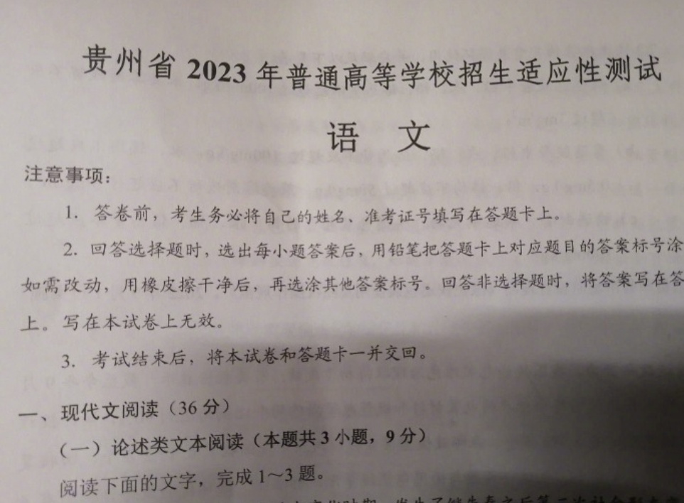 出现在贵州省一模试卷上