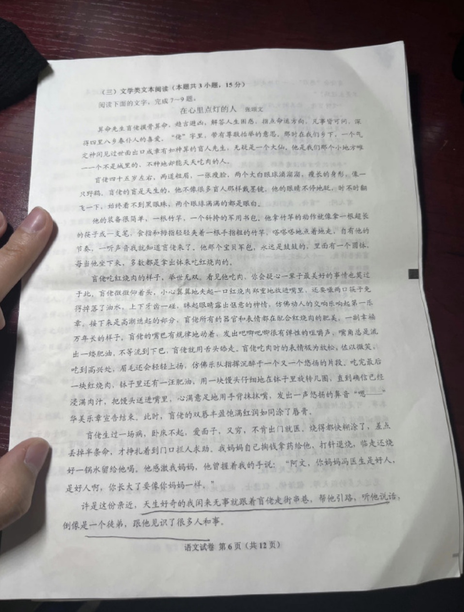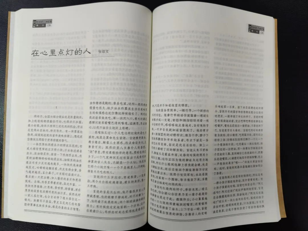 记者注意到,《在心里点灯的人》这篇散文原发表在2017年第3期《天涯》杂志上,原文8000多字。在文中,张颂文深情回忆了一个影响了他童年时代的重要人物——算命先生盲佬。