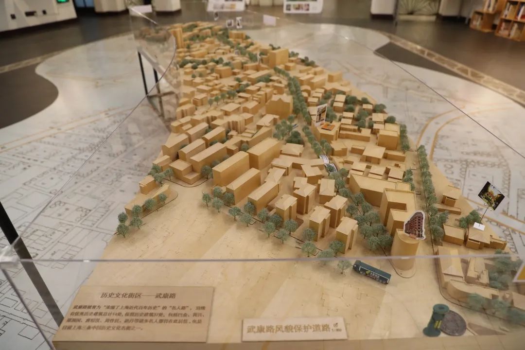 地图中央是整条武康路的模型,整个模型涵盖了法国文艺复兴式、西班牙式、英国乡村别墅式、装饰艺术派、现代派等各类建筑风格,既是中西文化的微缩展示,也是整条武康路的俯瞰导向地图。