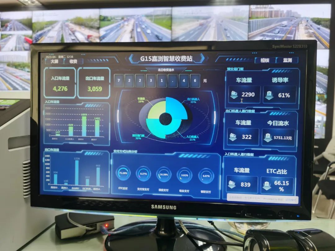 目前,G15嘉西收费站已初步实现全息仿真“一张图”,以动态数据采集、融合处理建模为基础,以收费数据叠加、可视化展示为方向,将收费广场运行状态、车辆交易情况实时仿真可视化展示,可方便、迅捷地为司乘提供有效服务,也有助于及时人工引导车辆,为排堵保畅保驾护航。