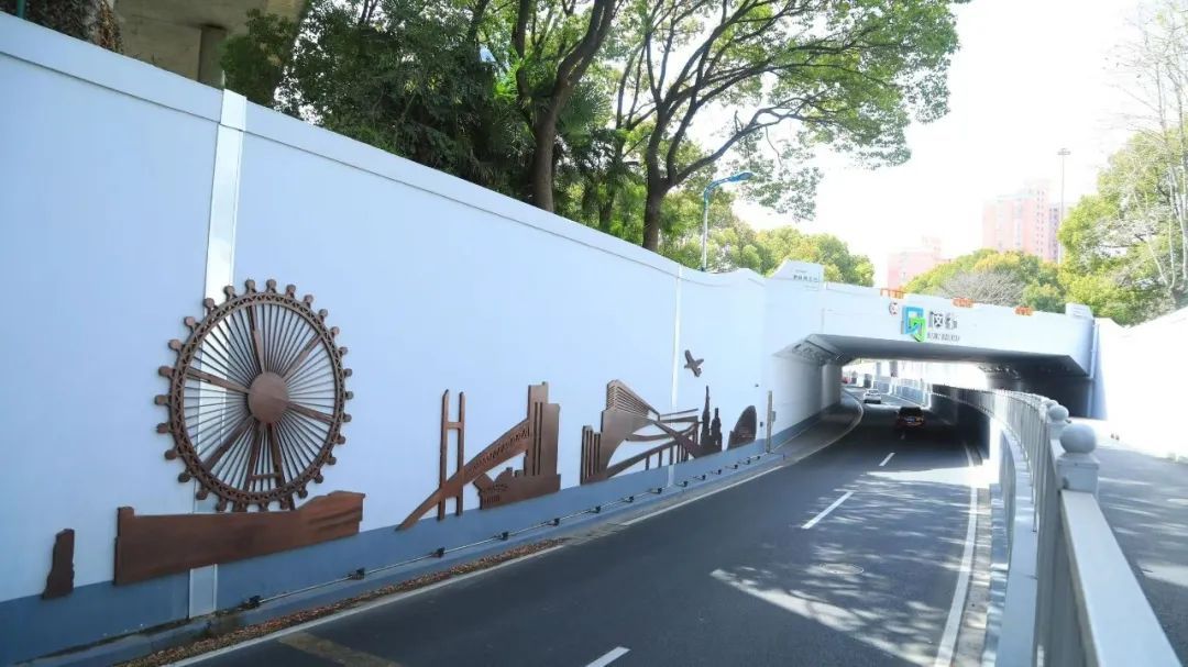 近日路过沪闵路地道的人们发现,往日灰扑扑的地道,两侧墙壁增添了许多“景点”:锦江乐园摩天轮、闵浦大桥、闵行体育公园等金属色浮雕跃然墙上,令人眼前一亮;不仅如此,自广通路起还布置了1公里长的绿化景观,近万盆五颜六色的鲁冰花,扮靓了这个进入闵行的门户入口。原来这是沪闵路景观提升工程,目前已完成了一期沪闵路隧道及周边景观提升,二期沪闵路(广通路-七莘路)在加快推进中。